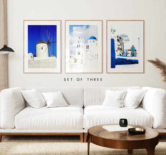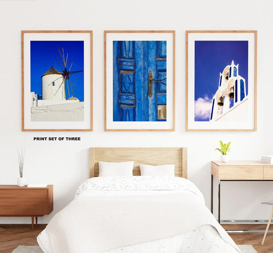 Santorini Print Set - Print Set of Three - Bold Blue Prints - Framed Prints Available - Greek Photography Prints - Greece Fine At Photo