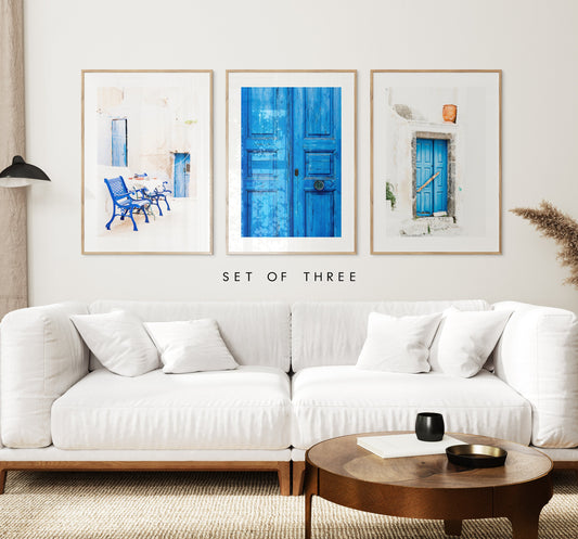 Greece Photography Print Set - Print Set of Three - Blue Wall Art - Blue Living Room Art - Bold Blue - Kitchen Print Set - Contemporary Art