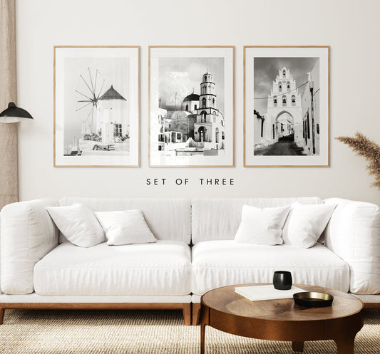 Greece Black and White Print Set - Print Set of Three - Monochrome - Black and White - Greece Print Set - Greek Print Set -Santorini
