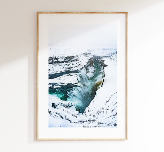 Gullfoss Waterfall - Iceland Photography Print - Iceland Wall Art - Iceland Poster - Frozen Landscape - Iceland Waterfalls - Landscape