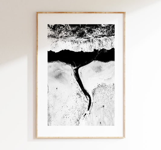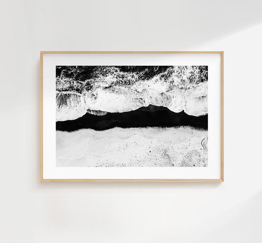 Black Beach - Iceland Photography Print - Iceland Wall Art - Iceland Poster - Aerial Photography - Black and White Photography - Minimalist