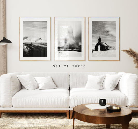 Iceland Print Set - Black and White Photography - Print Set x3 - Monochrome - Minimalist - Iceland Print - Iceland Poster - Iceland Wall Art