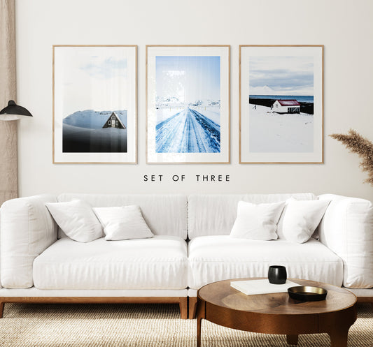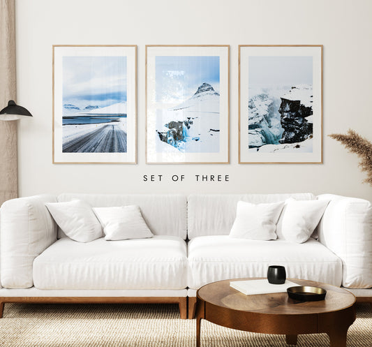 Iceland Print Set - Winter Landscapes - Print Set x3 - Iceland Landscape - Mountains - Minimalist Wall Art - Contemporary - White Wall Art