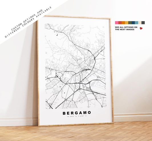 Bergamo Map Print - City Map Poster - Map Art - Map Wall Art - Italy City Maps - Bergamo Print - Bergamo Poster - Minimalist City Map