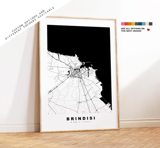 Brindisi Map Print - City Map Poster - Map Art - Map Wall Art - Italy City Maps - Brindisi Print - Brindisi Poster - Minimalist City Map
