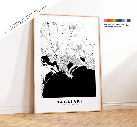 Cagliari Map Print - City Map Poster - Map Art - Map Wall Art - Italy City Maps - Cagliari Print - Cagliari Poster - Minimalist City Map