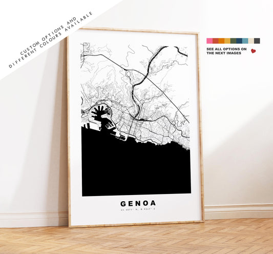 Genoa Map Print - City Map Poster - Map Art - Map Wall Art - Italy City Maps - Genoa Print - Genoa Poster - Minimalist City Map