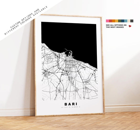 Bari Map Print - City Map Poster - Map Art - Map Wall Art - Italy City Maps - Bari Print - Bari Poster - Minimalist City Map