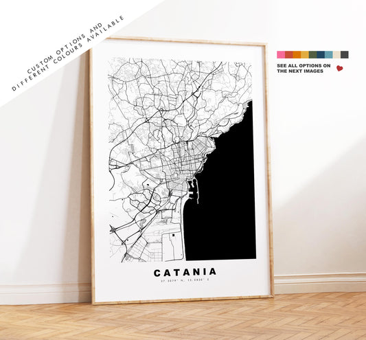 Catania Map Print - City Map Poster - Map Art - Map Wall Art - Italy City Maps - Catania Print - Catania Poster - Minimalist City Map