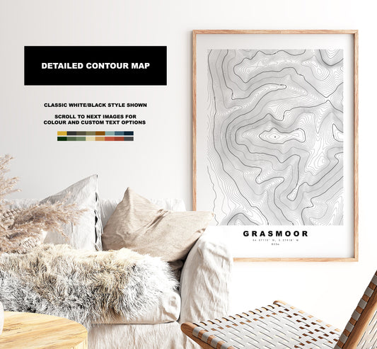 Grasmoor Print - Contour Map - Grasmoor Lake District Map - Lake District - Topographic Map - Print - Poster - Wall Art - Topography