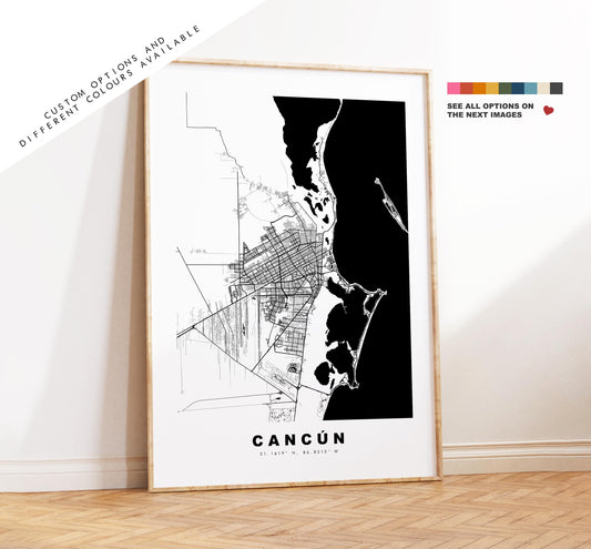 Cancun Map Print - City Map Poster - Map Art - Map Wall Art - Mexico City Maps - Cancún Print - Cancún Poster - Minimalist City Map