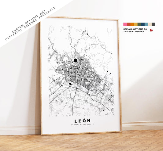 Leon Map Print - City Map Poster - Map Art - Map Wall Art - Mexico City Maps - León Print - León Poster - Minimalist City Map