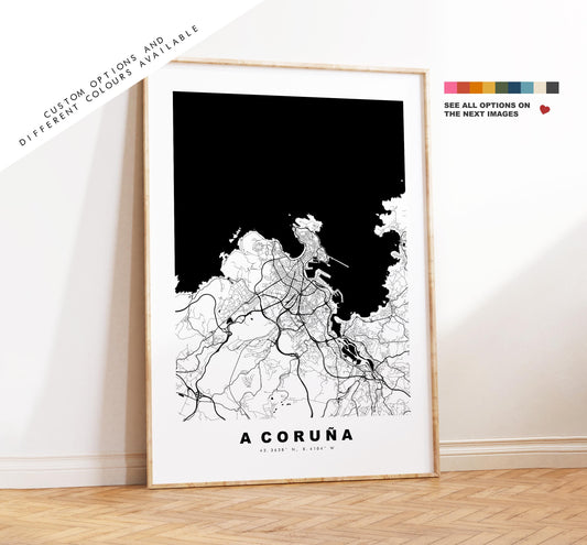 A Coruna Map Print - City Map Poster - Map Art - Map Wall Art - Spain City Maps - A Coruna Print - A Coruña Poster - Minimalist City Map