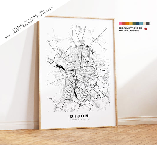 Dijon Map Print - City Map Poster - Map Wall Art - France City Maps - Dijon Print - Dijon Poster - Minimalist City Map - France