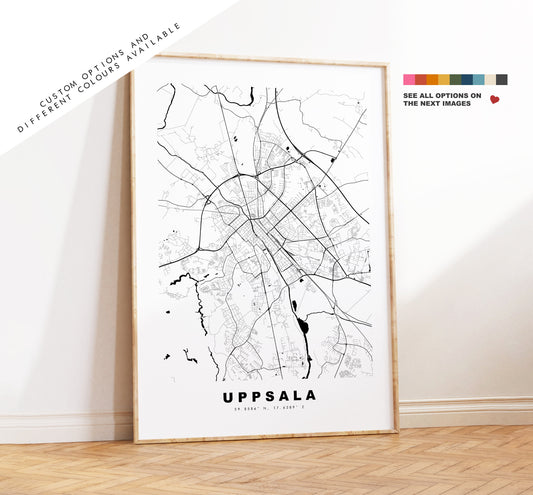Uppsala Map Print - City Map Poster - Map Wall Art - Sweden City Maps - Uppsala Print - Uppsala Poster - Minimalist City Map - Sweden