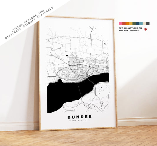 Dundee Map Print - Minimalist City Map Poster - Map Wall Art - Scotland - UK - Dundee Print - Dundee Poster - Different Colours Available