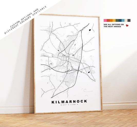 Kilmarnock Map Print - Minimalist City Map Poster - Map Art - Scotland - UK - Kilmarnock Print - Kilmarnock Poster - Different Colours Available