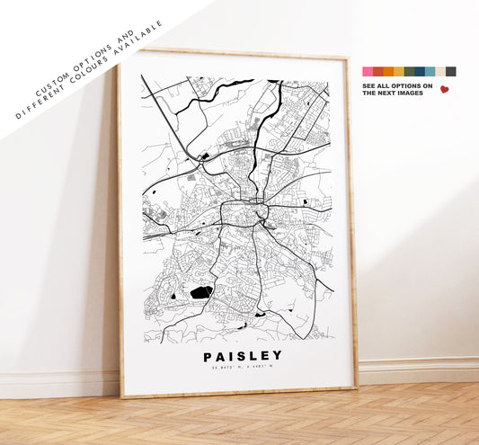 Paisley Map Print - Minimalist City Map Poster - Map Wall Art - Scotland - UK - Paisley Print - Paisley Poster - Different Colours Available