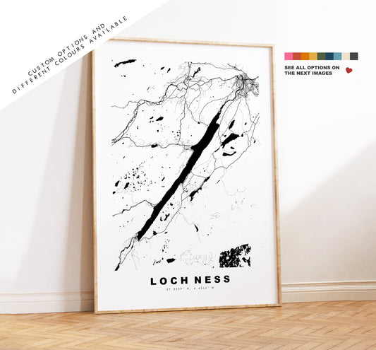 Loch Ness Map Print - Minimalist Map Poster - Map Wall Art - Scotland - UK - Loch Ness Print - Loch Ness Poster - Different Colours Available