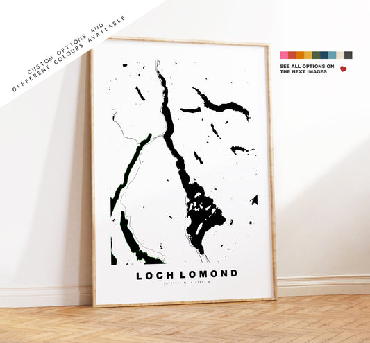 Loch Lomond Map Print - Minimalist Map Poster - Map Art - Scotland - UK - Loch Lomond Print - Loch Lomond Poster - Different Colours Available