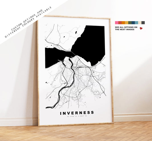 Inverness Map Print - Minimalist City Map Poster - Map Art - Scotland - UK - Inverness Print - Inverness Poster - Different Colours Available