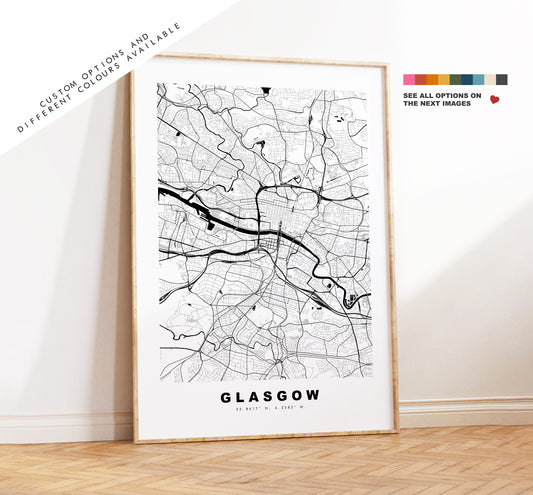 Glasgow Map Print - Minimalist City Map Poster - Map Wall Art - Scotland - UK - Glasgow Print - Glasgow Poster - Different Colours Available