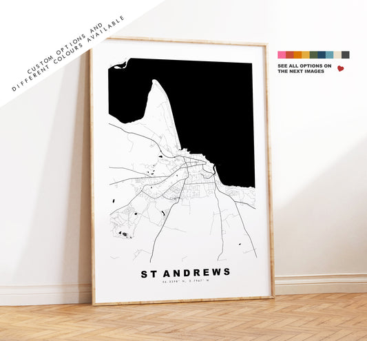 St Andrews Map Print - Minimalist City Map Poster - Map Art - Scotland - UK - St Andrews Print - St Andrews Poster - Different Colours Available