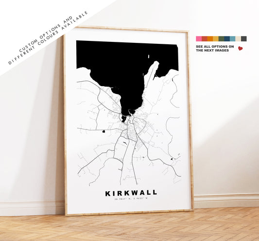 Kirkwall Map Print - Minimalist City Map Poster - Map Wall Art - Scotland - UK - Kirkwall Print - Kirkwall Poster - Different Colours Available