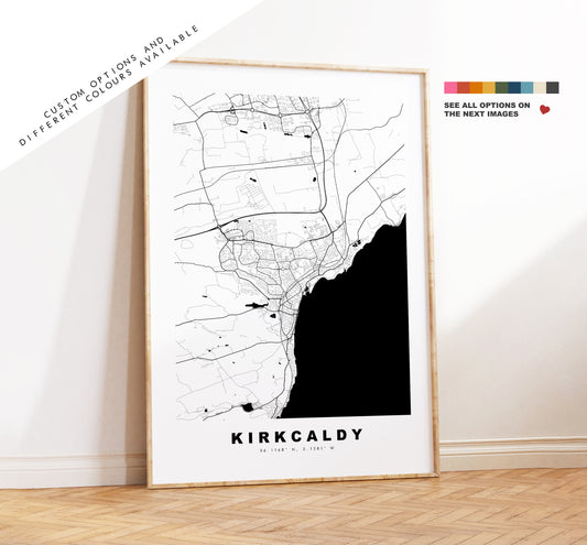 Kirkcaldy Map Print - Minimalist City Map Poster - Map Art - Scotland - UK - Kirkcaldy Print - Kirkcaldy Poster - Different Colours Available