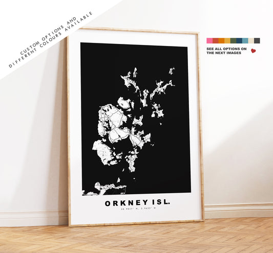 Orkney Map Print - Minimalist City Map Poster - Map Art - Scotland - UK - Orkney Islands Print - Orkney Poster - Different Colours Available