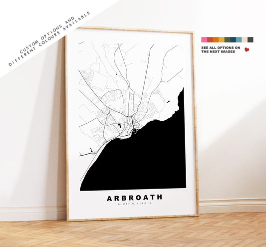 Arbroath Map Print - Minimalist City Map Poster - Map Wall Art - Scotland - UK - Arbroath Print - Arbroath Poster - Different Colours Available