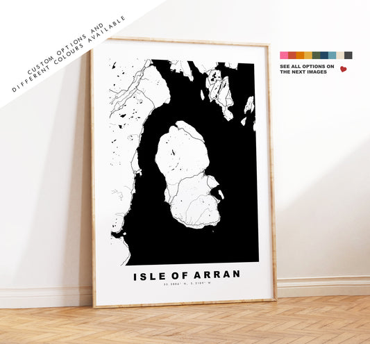 Arran Map Print - Minimalist Map Poster - Map Wall Art - Scotland - UK - Isle of Arran Print - Arran Poster - Different Colours Available