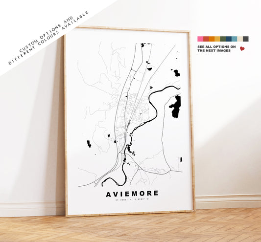Aviemore Map Print - Minimalist City Map Poster - Map Wall Art - Scotland - UK - Aviemore Print - Aviemore Poster - Different Colours Available