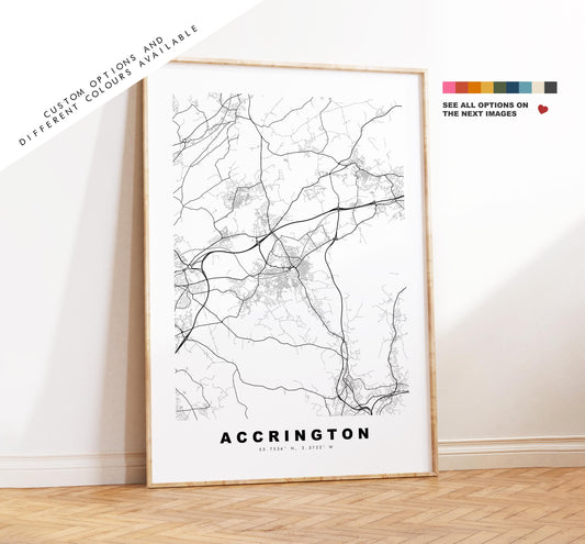 Accrington Map Print - Minimalist City Map Poster - Map Art - UK - Accrington Print - Accrington, Lancashire - Different Colours Available