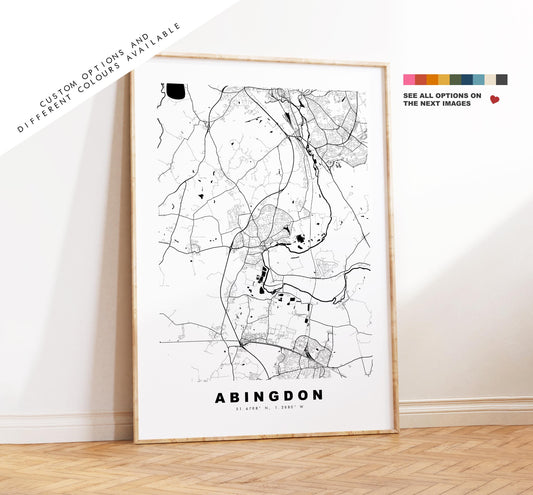 Abingdon Map Print - Minimalist City Map Poster - Map Art - UK - Abingdon Print - Abingdon, Oxfordshire Poster - Different Colours Available