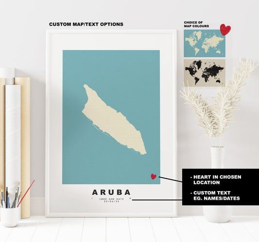 Aruba Map Print - Personalised Map Gift - Framed or Canvas Options Available - Custom Text Options - Personalised Gift - Caribbean