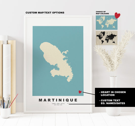 Martinique Map Print - Personalised Map Gift - Framed or Canvas Options Available - Custom Text Options - Personalised Gift - Caribbean