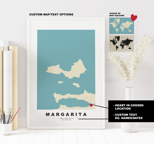 Isla Margarita Map Print - Personalised Map Gift - Framed or Canvas Options Available - Custom Text Options - Personalised Gift - Caribbean