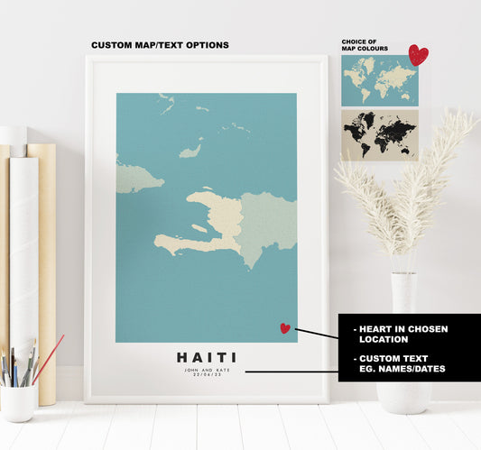 Haiti Map Print - Personalised Map Gift - Framed or Canvas Options Available - Custom Text Options - Personalised Gift - Caribbean