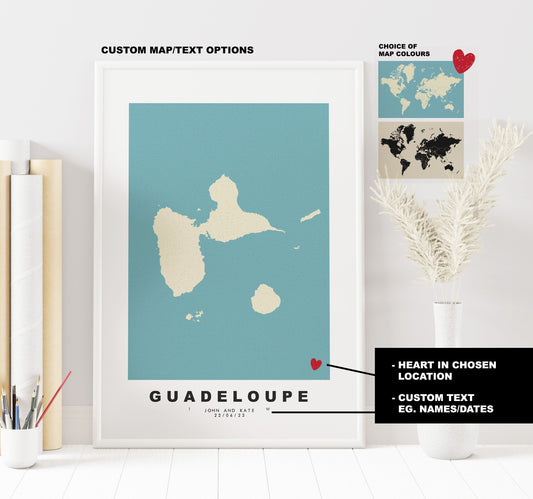 Guadeloupe Map Print - Personalised Map Gift - Framed or Canvas Options Available - Custom Text Options - Personalised Gift - Caribbean