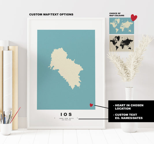 Ios Map Print - Personalised Map Gift - Framed or Canvas Options Available - Custom Text Options - Personalised Gift - Greece & Islands