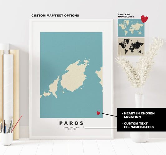 Paros Map Print - Personalised Map Gift - Framed or Canvas Options Available - Custom Text Options - Personalised Gift - Greece & Islands