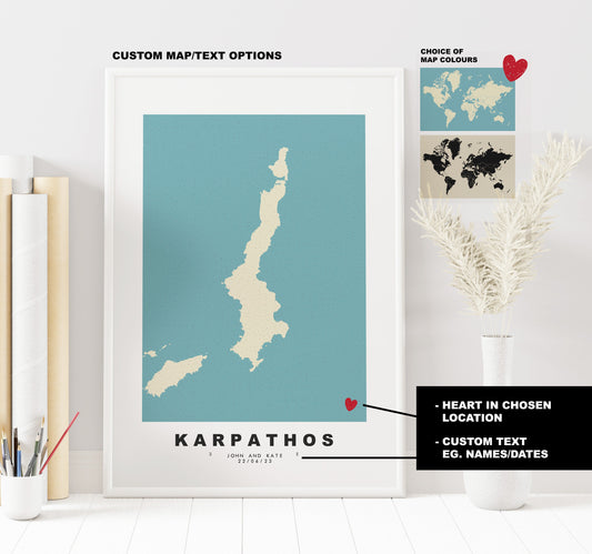 Karpathos Map Print - Personalised Map Gift - Framed or Canvas Options Available - Custom Text Options - Personalised Gift - Greece & Islands