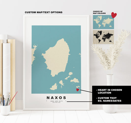 Naxos Map Print - Personalised Map Gift - Framed or Canvas Options Available - Custom Text Options - Personalised Gift - Greece & Islands