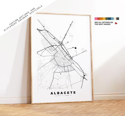 Albacete Map Print - City Map Poster - Map Art - Map Wall Art - Spain City Maps - Albacete Print - Albacete Poster - Minimalist City Map