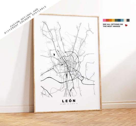 Leon Map Print - City Map Poster - Map Art - Map Wall Art - Spain City Maps - Leon Print - León Poster - Minimalist City Map