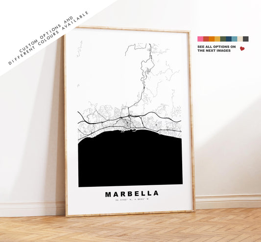 Marbella Map Print - City Map Poster - Map Art - Map Wall Art - Spain City Maps - Marbella Print - Marbella Poster - Minimalist City Map