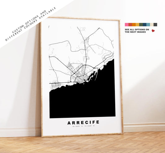 Arrecife Map Print - City Map Poster - Map Art - Map Wall Art - Spain City Maps - Print - Arrecife - Lanzarote - Minimalist City Map