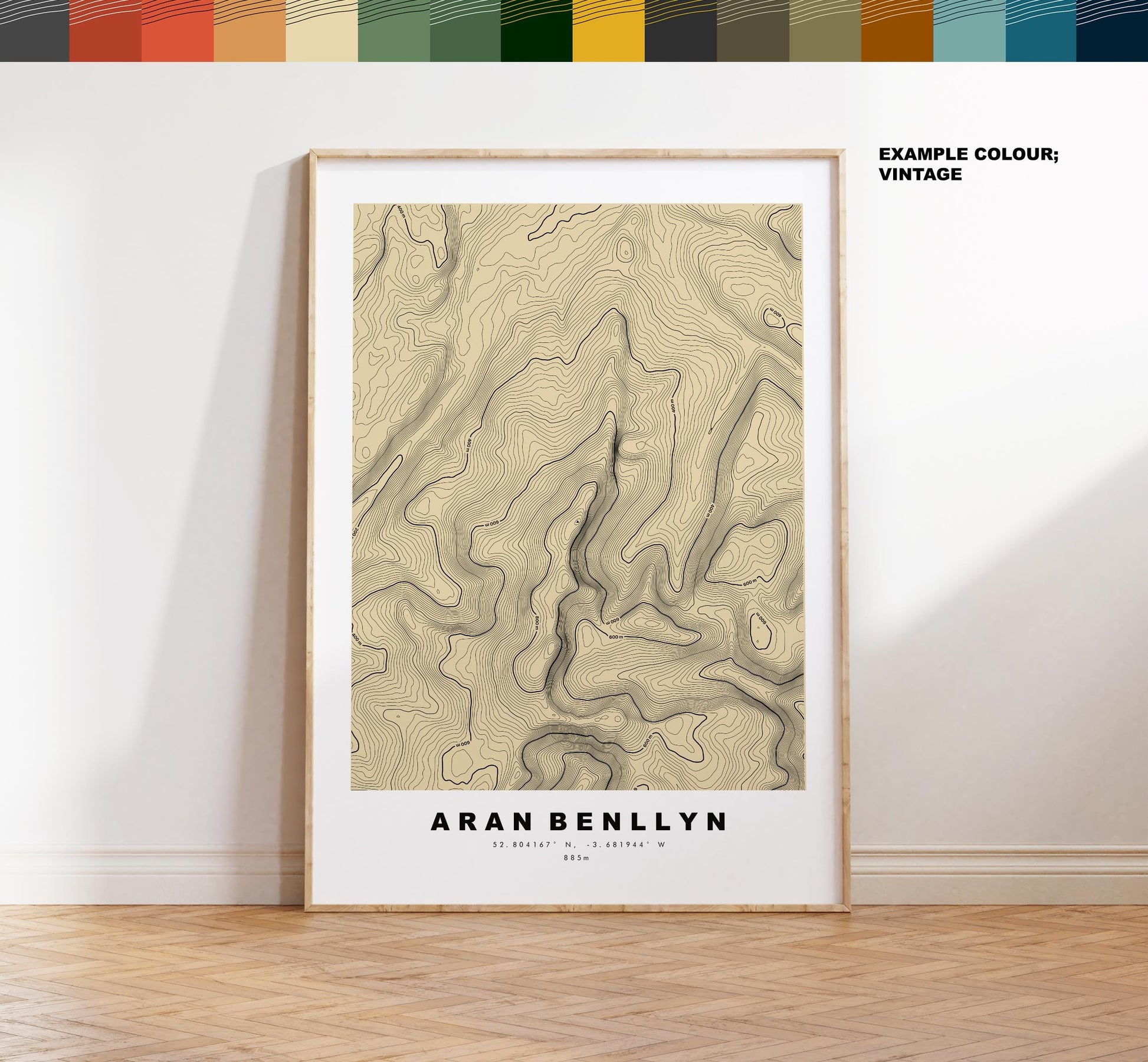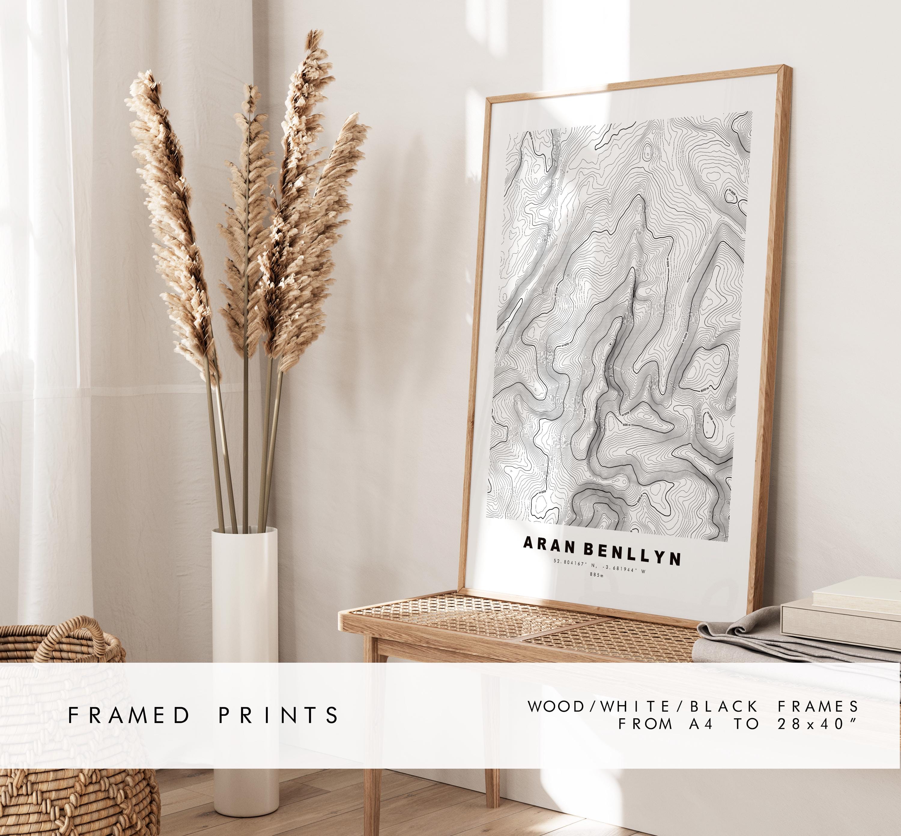 Aran Benllyn contour map in a minimalist style, available in classic white/black or in a choice of map colours (see listing images). These contour maps are very detailed, with height markers at 200m intervals and the summit marked where possible - so the larger size the better!