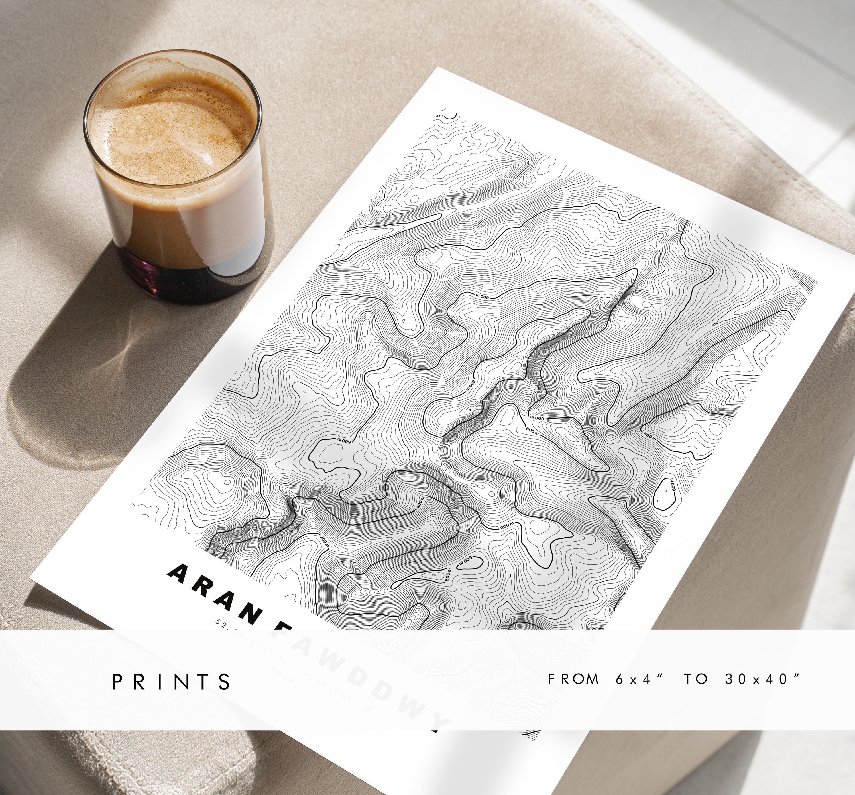 Aran Fawddwy Print - Contour Map - Snowdonia - Wales - Topographic Map - Print - Poster - Wall Art - Aran Fawddwy Poster - Mawddwy Peak